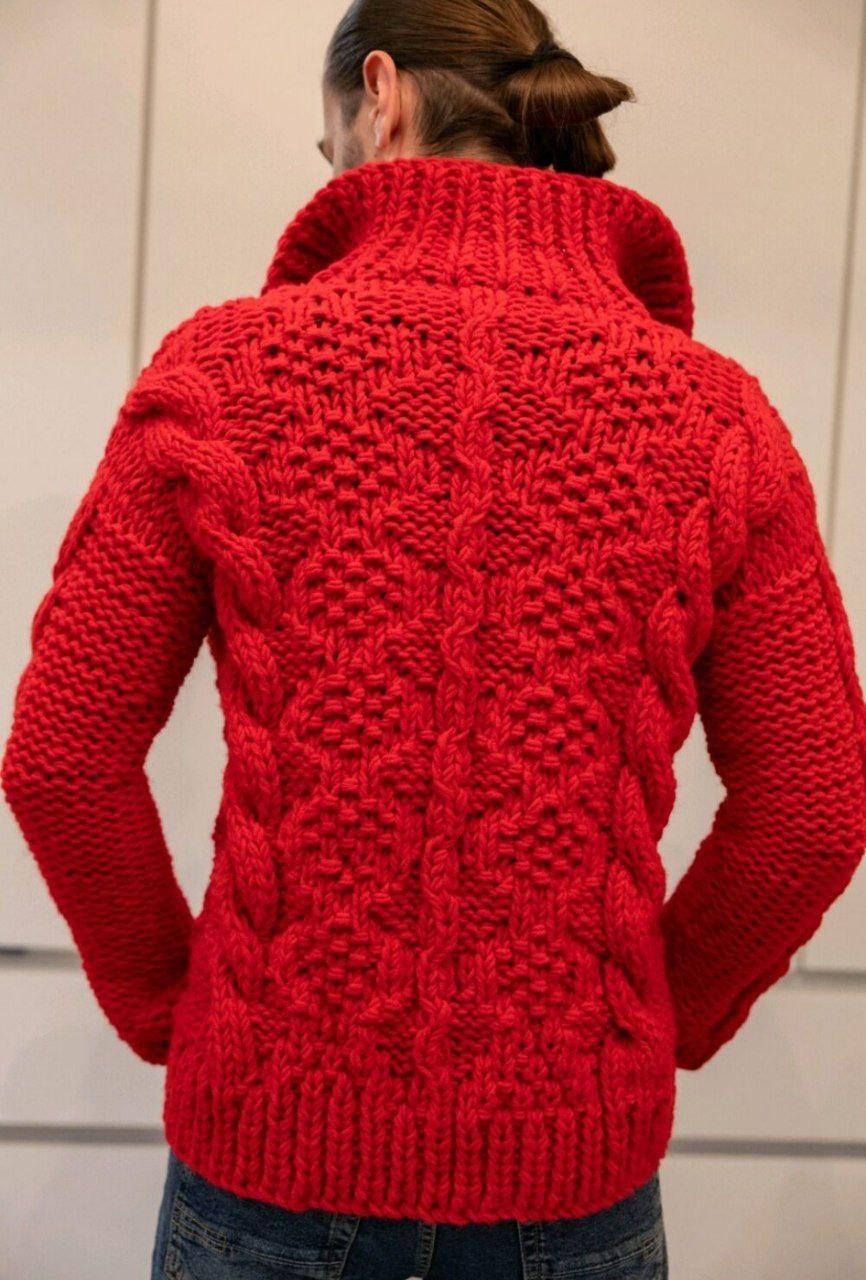 Очень красивый теплый кардиган из полушерстяной пряжи. Палитра оттенков большая. Пряжа не колючая. Можно стирать в стиральной машине на режиме шерсть. Ворот высокий, фасон необычный и комфортный.